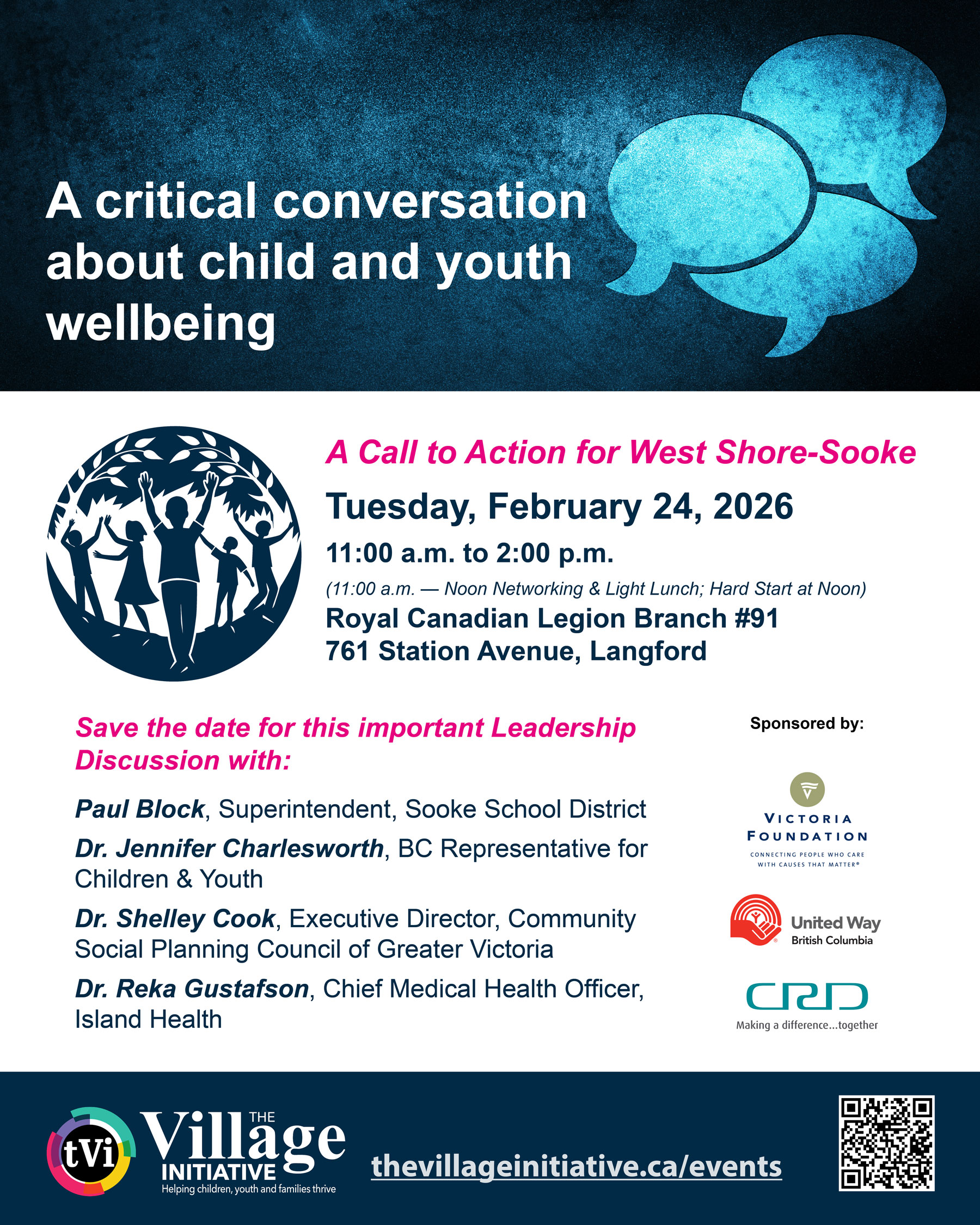 The Village is currently in the process of pitching an important business case to the Municipal Leaders Advisory Team (MLAT), a joint, collaborative initiative of seven municipalities— Colwood, Langford, Sooke, Highlands, Metchosin, Juan de Fuca Electoral Area, and View Royal—with active participation from Sooke School District (SD62), The Village Initiative, and the Island Health Population & Public Health Team.